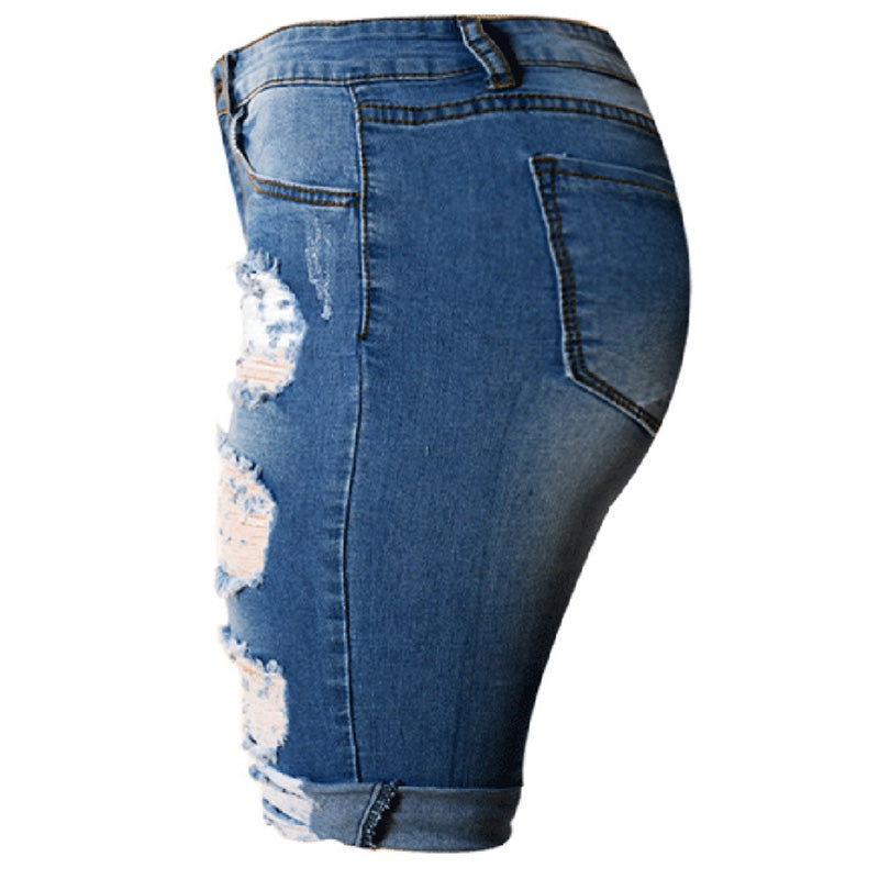 Short cortos de mezclilla elásticos lavados con agujeros rasgados